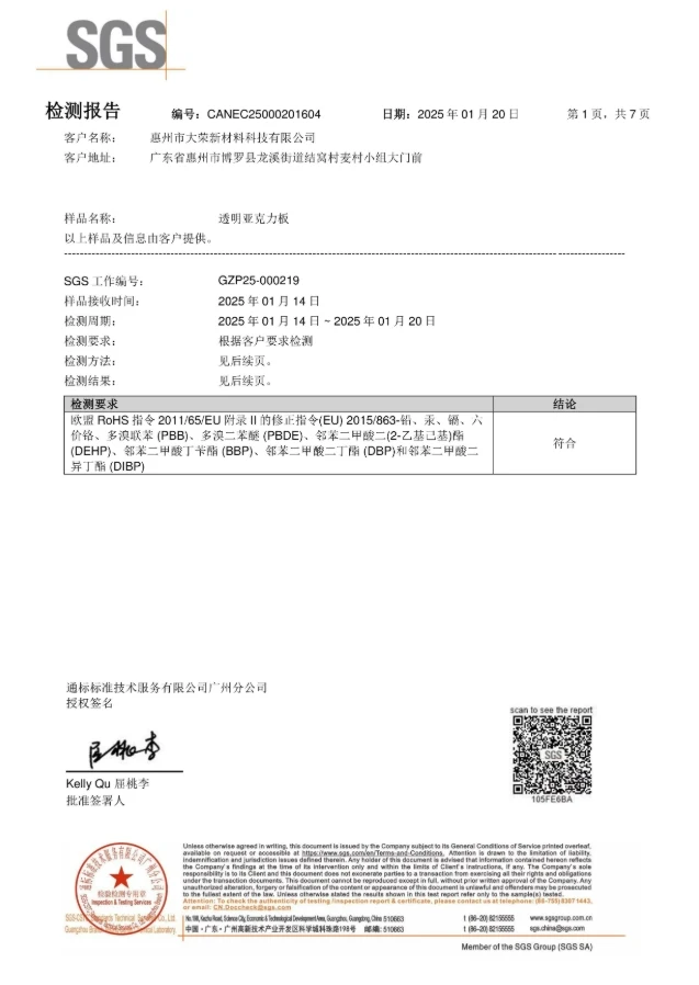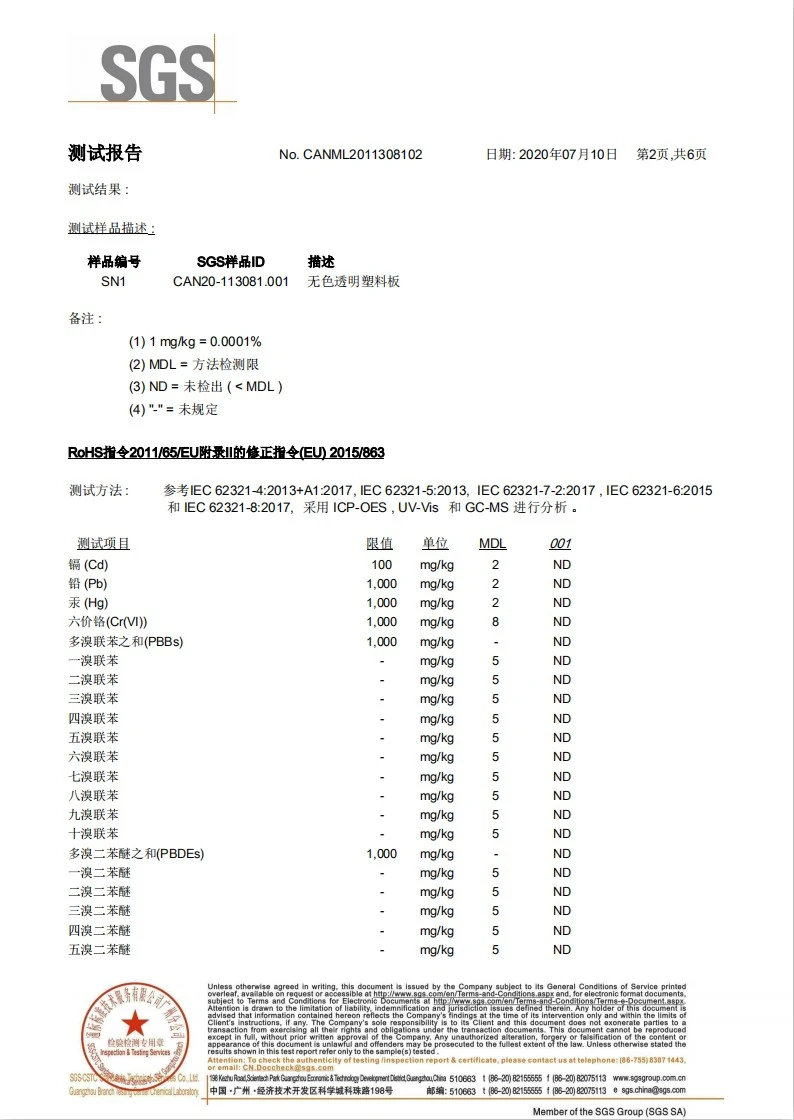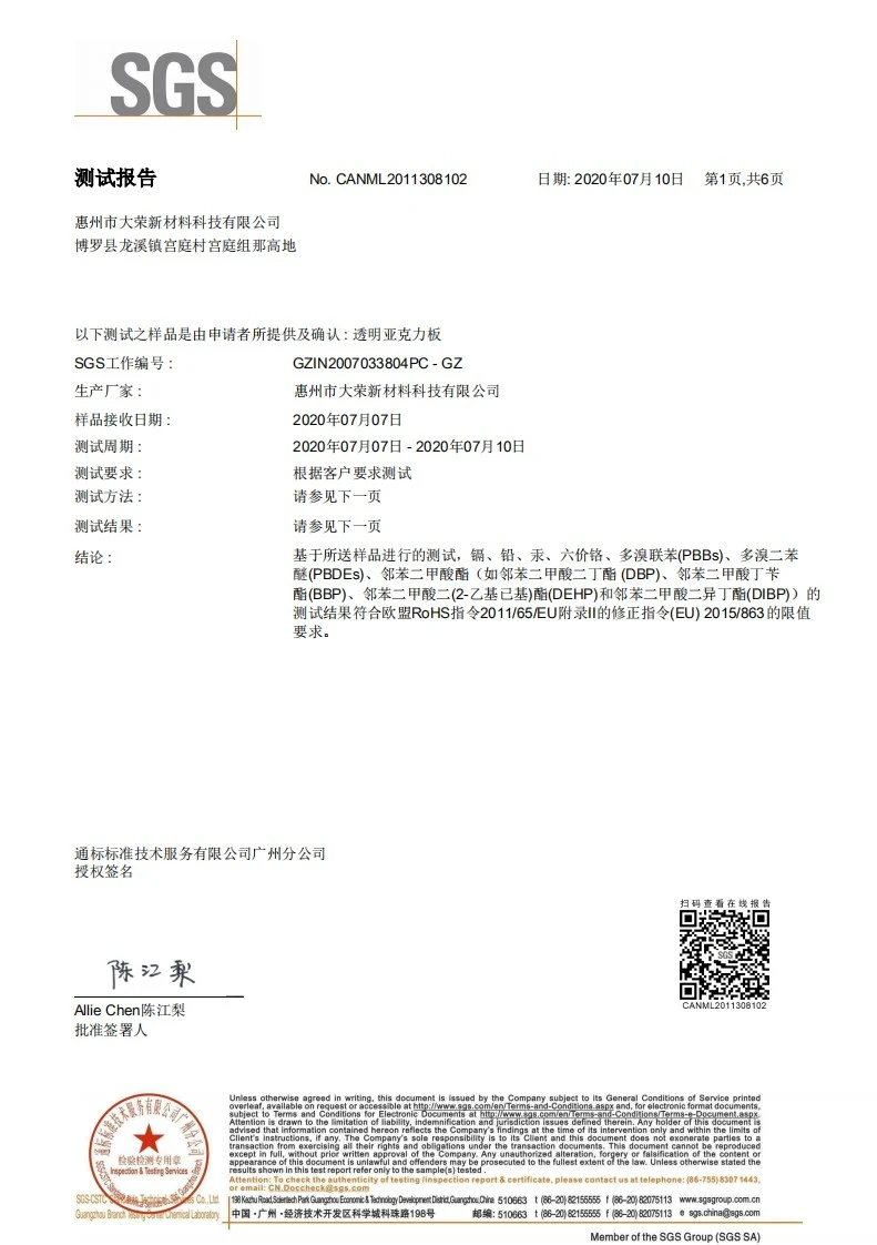 Excellent light transmission and clarity; commonly used for display stands, protective covers,light boxes, and partitions.